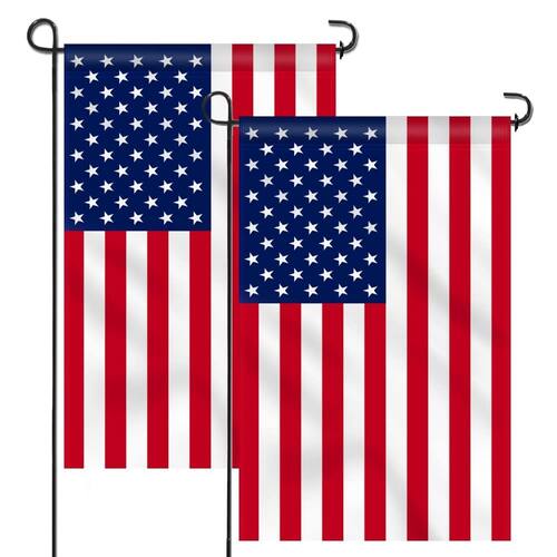 - Importado. Feito de 100% poliéster. O pacote contém duas bandeiras de jardim dos EUA Anley de 18 x 12,5 polegadas, com manga de 1 polegada de largura. Mastro de bandeira não incluído.