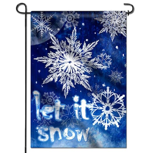 - Importado. Feito de 100% poliéster. O pacote contém uma bandeira de jardim de flocos de neve ANLEY de 12,5 x 18 polegadas, com manga larga de 1 polegada. Mastro de bandeira NÃO incluído.