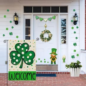 - DECORAÇÃO DE CASA: Bandeira de jardim com design de trevos e bolinhas, perfeita para qualquer deck, quintal, pátio, alpendre ou varanda. Marque uma aparência encantadora para qualquer quintal, gramado ou jardim.