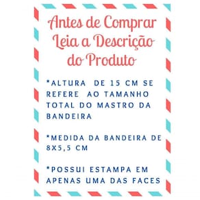 * MEDIDA DE 15 CM SE REFERE AO TAMANHO DO MASTRO DA BANDEIRA