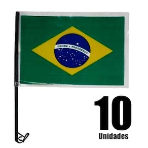 Bandeira do Brasil de Plástico 30 cm x 45 cm para Carro - 10 UnidadesA Bandeira do Brasil para Carro é ideal para apoiar a Seleção Brasileira durante as maiores competições de esporte do planeta, sendo uma bandeira pequena de aproximadamente 30 cm de altura e 45 cm de comprimento, é perfeita pois com seu tamanho médio não atrapalha a visão do motorista e mesmo assim se destaca em meio ao trânsito! A bandeira acompanha um suporte preto de plástico com apoio para anexar a bandeira na janela do veículo.