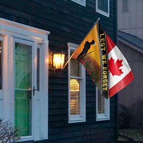 Material: poliéster (pongee) Tamanho: 150 cm × 90 cm Peso: 120 g Design comemorativo: apresenta a comovente frase “Não esqueçamos” com a silhueta de um soldado em pé contra um lindo campo de papoulas, ao lado da bandeira canadense e da Union Jack. Poliéster de alta qualidade: feita de tecido de poliéster premium, esta bandeira é feita para durar tanto em ambientes internos quanto externos, ideal para eventos comemorativos e do Dia da Memória. Perfeito para o Dia da Lembrança: ideal para homenagear soldados mortos, veteranos e lembrar os sacrifícios feitos pelos militares canadenses durante as guerras. Fácil de exibir: equipada com ilhós de latão, esta bandeira pode ser facilmente pendurada sem um mastro, tornando-a uma adição versátil para memoriais, residências ou espaços públicos. Resistente ao desbotamento: as cores vivas e as imagens poderosas foram projetadas para resistir aos elementos, garantindo uma beleza duradoura mesmo sob a luz do sol.