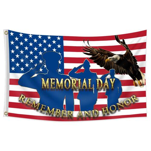 Material: poliéster (pongee) Tamanho: 150 cm × 90 cm Peso: 120 g Design de homenagem ao Memorial Day: apresenta uma imagem poderosa de soldados saudando, uma águia voando e a bandeira americana com a mensagem “Lembre-se e homenageie o Dia da Memória”. Poliéster de alta qualidade: feita de material de poliéster durável, esta bandeira foi projetada para suportar condições externas, mantendo cores vibrantes. Ideal para o Memorial Day e o Dia dos Veteranos: Perfeito para comemorar os sacrifícios de soldados no Memorial Day, no Dia dos Veteranos ou em qualquer evento patriótico. Tamanho de exibição perfeito: Medindo 90x150 cm (aproximadamente 3x5 pés), esta bandeira tem o tamanho ideal para pendurar em ambientes internos ou externos, em um mastro ou parede. Fácil de pendurar: vem com ilhós reforçados para instalação segura, embora o mastro não esteja incluído, oferecendo versatilidade para vários monitores.