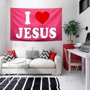 Material: poliéster (pongee) Tamanho: 150 cm × 90 cm Peso: 120 g Feito de tecido de poliéster de alta qualidade, ideal para uso interno e externo. Design ousado de “Eu amo JESUS” com um coração vermelho em um fundo rosa vibrante, perfeito para expressar fé. Com o tamanho de 90 x 150 cm, é uma excelente opção para reuniões na igreja, desfiles ou exibições pessoais. Ilhós incluídos para facilitar a suspensão; nenhum mastro é fornecido. Uma ótima maneira de mostrar amor e fé, perfeita para eventos religiosos, eventos religiosos ou decoração de casa.