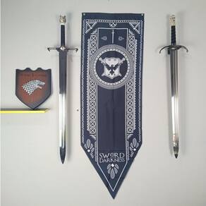 Bandeira Flâmula com Brasão Casa Nights Watch Game Of Thrones Bandeira Flâmula com Brasão Casa Night's Watch Corvo Negro Game Of Thrones
