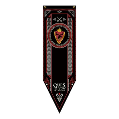 Adicione um toque de nobreza e autenticidade à sua coleção com esta bandeira flâmula da Casa Baratheon de Game of Thrones. Fabricada em Tactel de alta qualidade, esta bandeira apresenta o brasão distintivo da Casa Baratheon em uma dimensão de 150cm de comprimento e 48cm de largura.