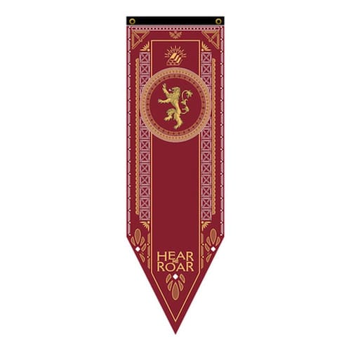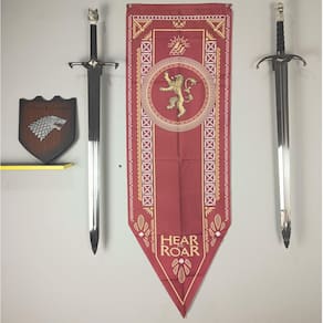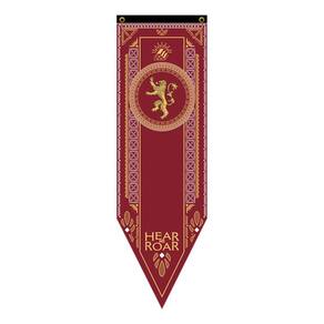 Entre no mundo de intrigas e poder de Westeros com esta bandeira flâmula detalhada da Casa Lannister, uma das famílias mais influentes e ricas da saga Game of Thrones. Feita em Tactel resistente, esta bandeira é uma peça de colecionador indispensável para os fãs mais devotos da série.