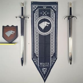 Entre no mundo de coragem e honra de Westeros com esta bandeira flâmula detalhada da Casa Stark, uma das famílias mais icônicas e respeitadas da saga Game of Thrones. Feita em Poliéster resistente, esta bandeira é uma peça de colecionador indispensável para os fãs mais devotos da série.