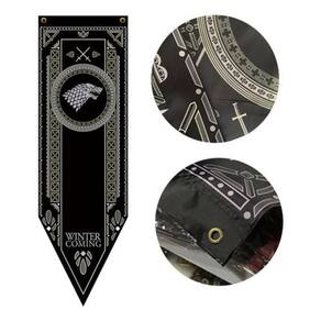 Adicione um toque de nobreza e autenticidade à sua coleção com esta réplica oficial da bandeira flâmula da Casa Cleogane de Game of Thrones. Feita em Poliéster de alta qualidade, esta bandeira possui o brasão distintivo da Casa Cleogane em uma dimensão de 150cm de comprimento e 48cm de largura.