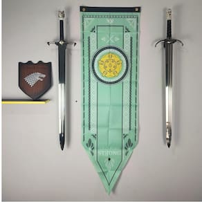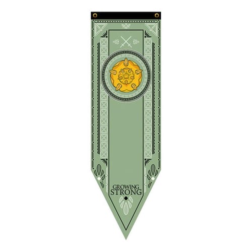 Adicione um toque de nobreza e autenticidade à sua coleção com esta bandeira flâmula da Casa Tyrell de Game of Thrones. Feita em Tactel de alta qualidade, esta bandeira possui o brasão distintivo da Casa Tyrell em uma dimensão de 150cm de comprimento e 48cm de largura.