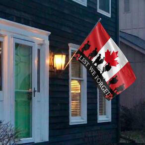 Material: poliéster (pongee) Tamanho: 150 cm × 90 cm Peso: 120 g Material de alta qualidade: feito de 100% poliéster durável, projetado para resistir a elementos externos, mantendo suas cores vivas em ambientes internos ou externos. Design patriótico: apresenta imagens poderosas de soldados em silhueta em frente à icônica bandeira canadense de folhas de ácer, junto com papoulas e a frase “PARA QUE NÃO ESQUEÇAMOS”. Tamanho perfeito: medindo 150 cm x 90 cm, é ideal para exibição em jardins, em eventos memoriais ou em sua casa como uma homenagem aos veteranos. Resistente às intempéries: esta bandeira é feita para resistir às intempéries, garantindo um uso duradouro sem desbotamento ou danos, mesmo quando exibida ao ar livre. Fácil de pendurar: equipado com bordas e ilhós reforçados, facilitando a suspensão e a exibição com ou sem um poste; nenhum poste incluído.