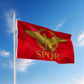 Material: poliéster (pongee) Tamanho: 150 cm × 90 cm Peso: 120 g Apresenta o icônico emblema SPQR do Império Romano, com uma águia dourada e coroa de louros em um fundo vermelho vibrante, representando o Senado e o Povo de Roma. Feito de tecido de poliéster de alta qualidade para durabilidade e resistência ao desbotamento, perfeito para exibições internas e externas. Mede 90 x 150 cm, o que o torna ideal para pendurar em jardins, eventos com temas históricos ou como parte de sua decoração inspirada no Império Romano. Equipado com ilhós de latão para facilitar a suspensão, sem mastro incluído, adequado para várias opções de exibição. Perfeito para fãs de história, entusiastas do Império Romano ou qualquer pessoa interessada em bandeiras exclusivas de estilo vintage para decoração de casa ou evento.