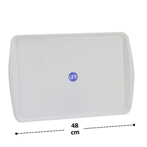 Bandeja 33x48cm de Plástico Retangular Branc - Feita em plástico material livre de BPA resistente que não transfere cheiro ao alimento;\n- Ideal para organizar sua casa! Pode ser utilizada na cozinha, banheiro, quarto, expositor de produtos ou auxiliar em distribuir coisas;\n- Com um design único que deixa mais charmosa e moderna sua bandeja;\n- Disponível na cor: Branca;\nEspecificações:\nMarca : UNIBRASIL Tipo de material : Plástico Cores ou Estampa : Branco Dimensões do Produto : 33 X 48 X 2 CM Dimensões da Embalagem : 33 X 48 X 2 CM Peso Bruto (Gramas) : 0.262 Marca: Não Informado
