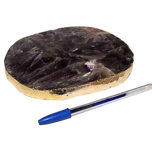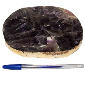 Bandeja de Ametista Baiana natural com 18 centimetros com borda dourada ideal para petisqueira e uma otima decoração Parte superior polida
