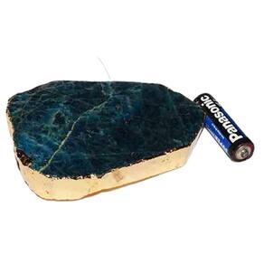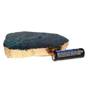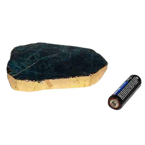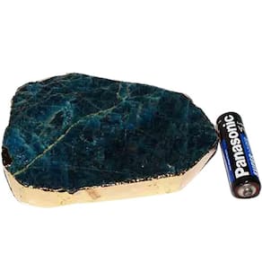 Raridade Bandeja de Apatita Azul natural com 9 centimetros com borda dourada ideal para petisqueira e uma otima decoração Parte superior polida