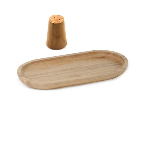 Bandeja Com Saleiro E Pimenteiro De Bambu Com Design Moderno