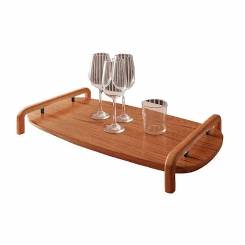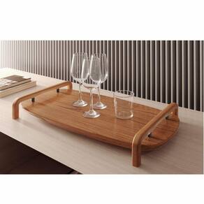 Bandeja Barcelona Decorativa Castanho Com Detalhes Em Metal Preto