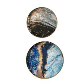 Bandejas decorativas redondas Benjara BM302609 azul e dourado - Conjunto de 2 - Jantes