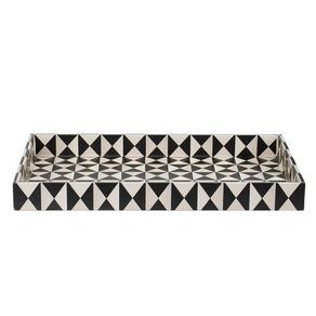 Bandejas decorativas Benjara de 25 polegadas, de madeira preta e branca, geométricas art déco, conjunto de 2
