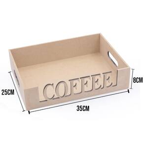 Bandeja cafe coffee café decoração 35x25 madeira mdf Cor: cru Bandeja versátil e multiuso coffee: Feita em mdf de 6mm, ela é ideal para organizar e decorar o seu cantinho especial do café, servir um cafezinho para os amigos, organizar papeis de escritório entre diversas outras utilidades.