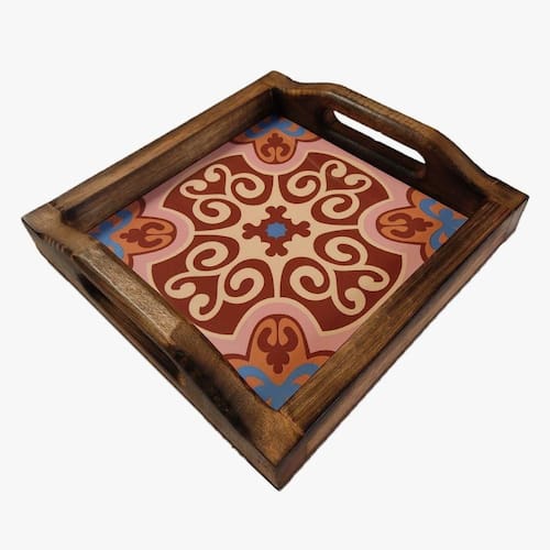 Com dimensões internas de 20x20cm e 6cm de altura, a bandeja oferece espaço suficiente para acomodar seus itens favoritos com praticidade. O acabamento em shou sugi ban na madeira confere um toque rústico e sofisticado à peça, enquanto o azulejo decorativo artesanal traz um toque de cor e personalidade, permitindo que você personalize a bandeja de acordo com seu estilo.