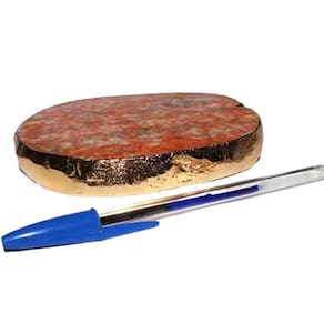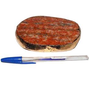 Bandeja de Calcita Laranja natural com 13 centimetros com borda dourada ideal para petisqueira e uma otima decoração Parte superior polida