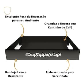 Decoração Versátil e Criativa: Este conjunto oferece versatilidade para a decoração do seu espaço dedicado ao café. As placas podem ser dispostas de diversas formas, permitindo que você personalize o layout conforme sua preferência, enquanto a bandeja serve como um prático suporte para xícaras, cápsulas e outros itens essenciais para o preparo do seu café perfeito.