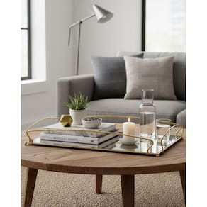 Bandeja Classic Dourada 389 Duler A Bandeja Classic combina elegância e funcionalidade que transforma a decoração de sua casa. Com estrutura metálica dourada e base espelhada, ela adiciona um toque sofisticado a qualquer ambiente. Perfeita para servir com charme ou compor a decoração de aparadores, mesas e bancadas. Seu design moderno e acabamento refinado valorizam o espaço, refletindo luz e requinte. Ideal para uso em salas, cozinhas, lavabos ou áreas gourmet. Dimensões: Altura 8 cm x Largura 33 cm x Profundidade 53 cm Cor: Dourado Material: Metal com base espelhada Marca: Duler Garantia: 3 meses