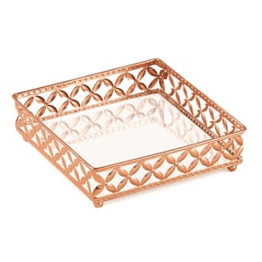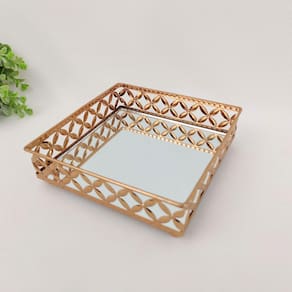 Bandeja Cobre Floral 5X17X17Cm Com Espelho Quadrada P