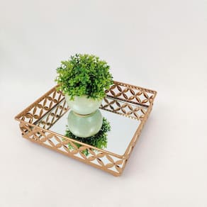 Uso: as bandejas tem a função não somente de servir, como também de decorar ambientes como salas e banheiros. Confira essa linda bandeja feita em metal, rica em detalhes florais com espelho. Elas dão elegância ao seu ambiente e seus objetos estarão sempre bem organizados