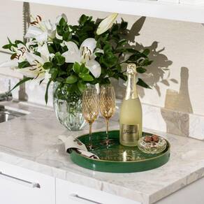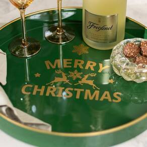 Bandeja Copa E Cia Christmas Verde Bandeja Copa e Cia Christmas Verde - Características Gerais do Produto: - Composição: Polipropileno; Carbono de Cálcio - Detalhes: Pintura Laqueada, Proporcionando Maior Resistência.; Peça Vendida de Forma Individual.; Design Exclusivo Copa&Cia.; As cores podem sofrer pequenas alterações de cor, variando de monitor para monitor.; Os objetos que ambientam as fotos não acompanham o produto.; As fotos produzidas são apenas como sugestão de uso com as demais peças da coleção. - Cuidados: Caso Sujar o Produto, Limpar Imediatamente.; Limpar o Produto Apenas com Pano Levemente Umedecido; Não molhar; Não utilizar solventes, abrasivos ou alvejantes. - Dimensões (cm): Diâmetro: 38 cm Acompanha o produto: - 1 Peça de Bandeja Garantia: - 7 dias/30 dias contra defeito de fabricação