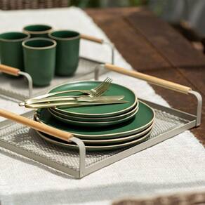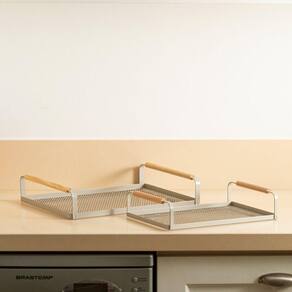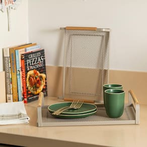 Bandeja Copa E Cia Rack Média Gelo Bandeja Copa e Cia Rack Média Gelo - Características Gerais do Produto: - Composição: Madeira; Ferro - Detalhes: Peça Vendida de Forma Individual.; Design Exclusivo Copa&Cia.; As cores podem sofrer pequenas alterações de cor, variando de monitor para monitor.; Os objetos que ambientam as fotos não acompanham o produto.; As fotos produzidas são apenas como sugestão de uso com as demais peças da coleção. - Cuidados: Armazenar em local seco e arejado.; Não podem ser colocados em lava-louças.; Evitar contato com objetos cortantes ou superaquecidos.; Não utilizar solventes, abrasivos ou alvejantes.; Limpar manualmente com pano úmido e detergente neutro. - Dimensões (cm): Média: 33,8 x 23,7 cm Acompanha o produto: - 1 Peça de Bandeja Garantia: - 7 dias/30 dias contra defeito de fabricação