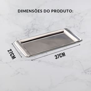 Tamanho Ideal: Com 37cm de comprimento, oferece espaço amplo para dispor seus itens de forma organizada e elegante, perfeita para reuniões familiares ou eventos. Bandeja de Aço Inox Coffee Retangular Elegância