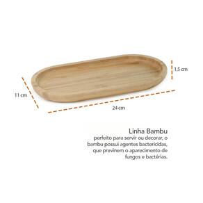Bandeja em bambu para servir ou decorar. Os utensilios em bambu possuem agentes bactericidas, que previnem o aparecimento de fungos e bacterias. S‹o resistentes e com menor absorcao de liquidos, se forem bem conservados, nao ficam escuros com facilidade.