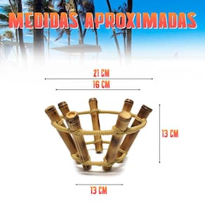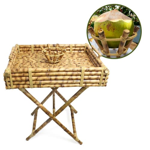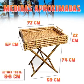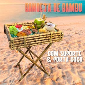 BANDEJA DE BAMBU COM ALÇAS SUPORTE CAVALETE PÉ DE APOIO E PORTA COCO CESTO DECORATIVOA Bandeja de Bambu e o Suporte para Coco são objetos para serem utilizados como decoração ou para servir, combinando com diversos ambientes, pois têm estilo sofisticado e rústico ao mesmo tempo.Combinando tanto com ambientes internos quanto externos, o bambu é um material ecológico e sustentável, resistente à água, ideal para beira de piscinas em casas, hotéis, pousadas e resorts.Acompanha suporte para acomodar a cesta e servir de apoio, mas, a bandeja também é flutuante. Contando com placa de isopor no fundo, ela pode ir para as piscinas para deixar os momentos de lazer repletos de requinte e glamour.DIMENSÕES APROXIMADAS DA BANDEJA:- Comprimento: 72cm- Largura: 57cm- Altura: 22cmDIMENSÕES APROXIMADAS DO SUPORTE ABERTO:- Comprimento: 59cm- Largura: 51cm- Altura: 74cmDIMENSÕES APROXIMADAS DO PORTA COCO:- Comprimento: 21cm- Largura: 13cm- Altura: 13cmCARACTERÍSTICAS:- Material da bandeja: bambu, cipó sintético e placa flutuante de isopor no fundo- Material do suporte e porta coco: bambu e cipó sintético- Cestos artesanais feitos com alto padrão de qualidade- Ecológico e sustentável- Ideal para servir ou decorar- Suporte de apoio dobrável: pode ser guardado em qualquer lugar- Excelente para áreas de lazer, piscinas, pousadas, hotéis, resorts e decoração de casa- Peso suportado pela bandeja aproximadamente: 8Kg- Peso suportado pelo suporte aproximdamente: 14KgITENS INCLUSOS:- 01 Bandeja de Bambu Grande- 01 Suporte Porta Coco- 01 Suporte Cavalete para BandejaOBSERVAÇÕES:- Garantia de 3 meses contra defeitos de fabricação- Imagens ilustrativas- Não nos responsabilizamos pelo uso inadequado do produtoNão deixe de conhecer nossos outros produtos! Marca: IGUANNA