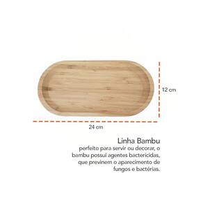 Bandeja em bambu para servir ou decorar. Os utensilios em bambu possuem agentes bactericidas, que previnem o aparecimento de fungos e bacterias. S‹o resistentes e com menor absorcao de liquidos, se forem bem conservados, nao ficam escuros com facilidade. Contem: 1 Bandeja Dimensao: 24 x 12 x 1,9 cm Material: bambu