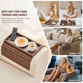 - ARMREST TABLE WITH SHAPE VERSATILITY: GEHE sofa arm tray is suitable for most wide sofas and it's foldable. The sofa armrest table can keep your sofa clean with a baffle design. Not just the sofa tray, put flatly, it can also be used as a computer tray table, drink holder, placemat, food tray, etc.
