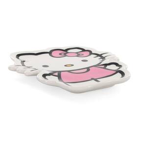 Você nunca pode ter muitos amigos Sempre feliz em ajudar um amigo, a Hello Kitty está aqui para manter seu espaço organizado com esta bandeja exclusiva de bugigangas. Há personalidade em cada detalhe deste prato encantador que é esculpido na forma da Hello Kitty. Uma homenagem encantadora ao seu apelo atemporal, esta peça de destaque cuidadosamente trabalhada elegantemente a apresenta em uma roupa rosa clássica. O design divertido traz um toque instantâneo de diversão onde quer que seja exibido, prometendo ser uma solução de armazenamento criativa. Uma maneira superfofa de se manter organizado. Fique tranquilo sabendo que suas pequenas lembranças e pertences estão nesta bandeja de bugigangas, com bordas ligeiramente elevadas para segurar itens com segurança. O local ideal para colocar joias, chaves, moedas sobressalentes e outros itens essenciais do dia a dia que você gosta de manter à mão. Se você está arrumando sua penteadeira, mesa ou mesa de cabeceira, este prato de armazenamento é a maneira perfeita de trazer ordem ao seu espaço. Compartilhe a magia da amizade com este colecionável oficialmente licenciado do mundo superfofo de Sanrio.