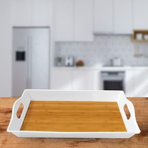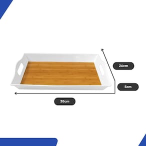 Bandeja de melamina: a bandeja de melamina é ideal para servir refeições com estilo e praticidade. Perfeita para café da manhã, churrascos e outras ocasiões, esta bandeja oferece uma superfície ampla e resistente. Feita de melamina durável, ela é leve, fácil de manusear e limpar, garantindo praticidade no dia a dia. Seu design elegante e versátil combina com qualquer decoração, tornando-a uma excelente opção para uso diário ou eventos especiais. Transforme suas refeições em momentos ainda mais agradáveis com esta bandeja funcional e charmosa.
