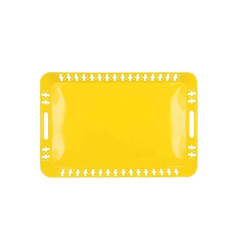Bandeja de metal amarelo 51x34x4cm Bandeja perfeita para organizar e decorar o seu ambiente, com toque e sofisticação e cor para sua casa Material: Metal Medida: 51x34x4CM Marca: Oren Ean: 7899735364159