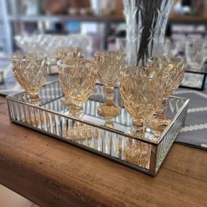 Adicione um toque de sofisticação à sua decoração com a Bandeja de Metal com Espelho Prateada da Lyor. Esta peça é mais do que uma simples bandeja, é um reflexo de elegância e funcionalidade.