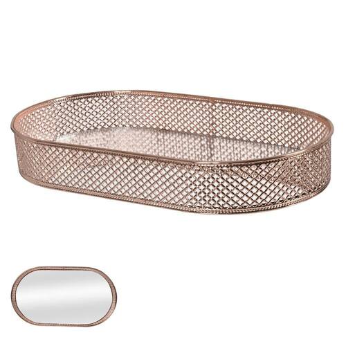 Medidas aproximadas: 34,5x20,5cm Contém: 01 bandeja. Cor: Rose Composição: Metal e Espelho. Ean: 7890880476148