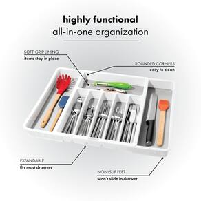 Coleção clássica de bandejas expansíveis madesmart Silverware White | 8 compartimentos | Ícones para ajudar a classificar talheres, talheres e utensílios | Forro macio | Sem BPA