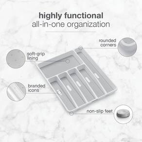 - Compartimentos de marca: projetado com 6 compartimentos espaçosos e ícones de marca que facilitam a organização de seus vários talheres e utensílios de cozinha por tamanho e tipo
