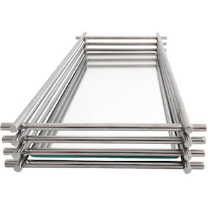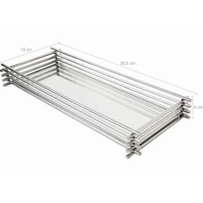 Garantia: 90 Dias / Peso: 800g / Cor: Espelhado, Rosé ou Cromado / Ref: 3139 Dimensões: 30,5cm (C) x 13cm (L) x 3cm (A) Cuidados: Não lavar com materiais abrasivos; Não utilizar itens ponte agudos, para não riscar o vidro; Não sobrecarregar ou transportar com peso. Área do Espelho: 27cm (C) x 9,5cm (L) Tubo: 4mm Capacidade: 1Kg. *OBS: Capacidade para item decorativo, para transportar com objetos, não ultrapassar 500g.