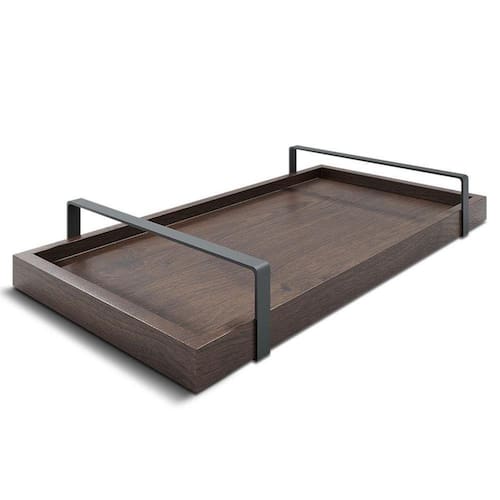 Bandeja Decorativa 25X50Cm Castanho Com Alça Preta