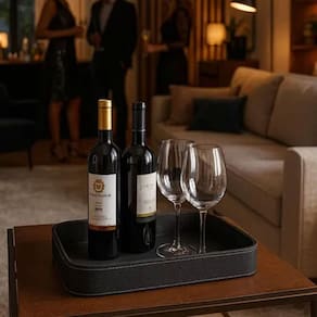 Bandeja decorativa elegância para casa em material sintético ========== sobre o produto ========== A bandeja decorativa elegância é o toque ideal de sofisticação para sua casa ou escritório. Produzida em material sintético de alta qualidade, com acabamento moderno e costura aparente, ela une beleza e funcionalidade, perfeita para organizar ou decorar qualquer ambiente. Use sobre mesas de centro, aparadores, penteadeiras, escritórios ou até no barzinho para dar um ar refinado e organizado. ========== especificações ========== Sofisticada e moderna Versátil para diferentes ambientes Fácil de combinar com outros itens decorativos Ideal para presentear com bom gosto ========== ficha técnica ========== Medidas: 36 x 24 x 5cm Material: material sintético Marca: paramount : 3 meses Estamos online para quaisquer dúvidas, Agradecemos e aguardamos o seu pedido. P: o produto é novo ou Marca: Não Informado