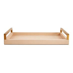 Cód: 17920 Bandeja Decorativa em MDF com Revestimento em PU Bege Material: MDF e PU Cor: BEGE Dimensões: 40x27x7cm (CxLxA)