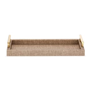 A Bandeja Decorativa em MDF com Revestimento em PU Marrom combina elegância e praticidade em uma peça sofisticada. Seu acabamento em PU com textura suave adiciona um toque moderno, enquanto as alças metálicas douradas garantem charme e funcionalidade.