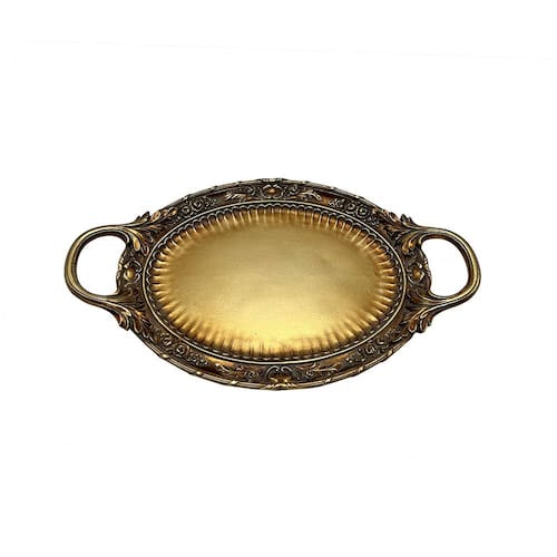 Cód: CD3026 Bandeja Decorativa em Resina Dourada Material: Resina Cor: Dourado Dimensões: 34x20x3cm (CxLxA)